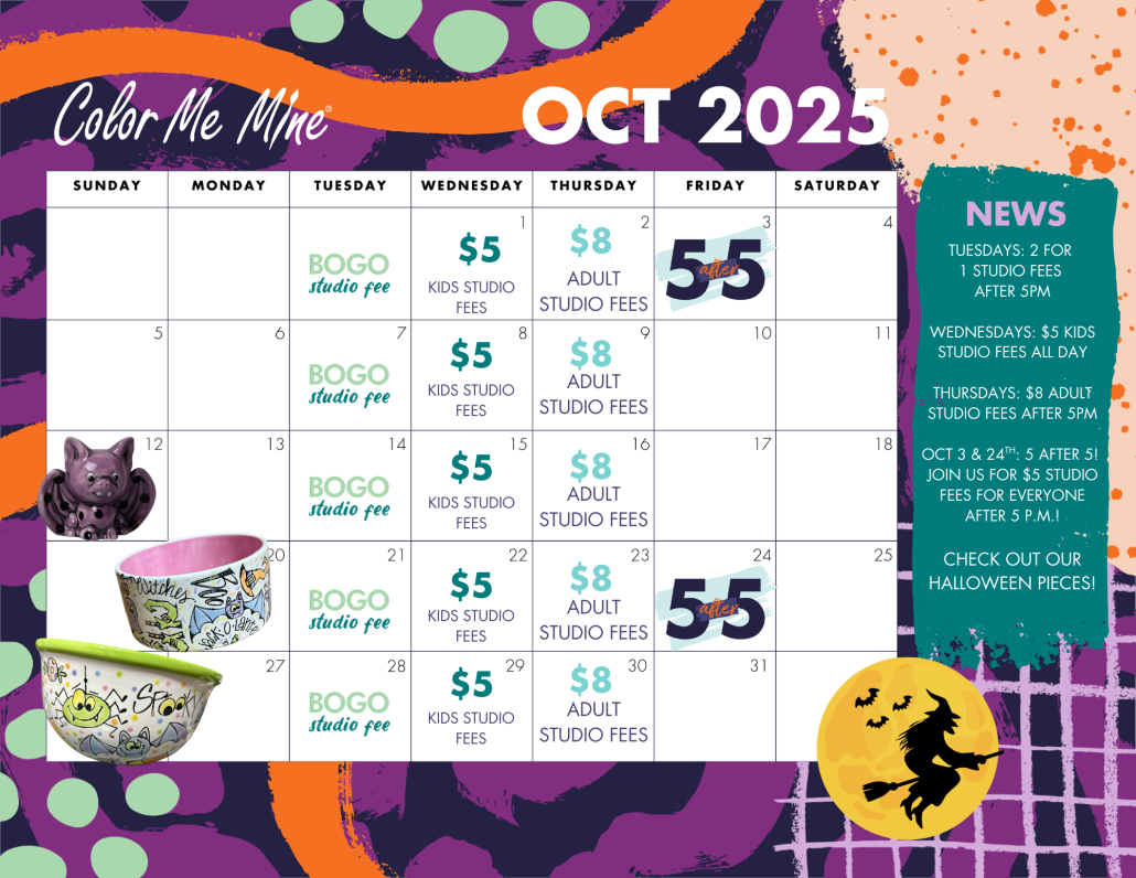 These promotions do not include cost of ceramics. Ceramics must be paid separately. Cannot be combined with other offers, party packages, etc.